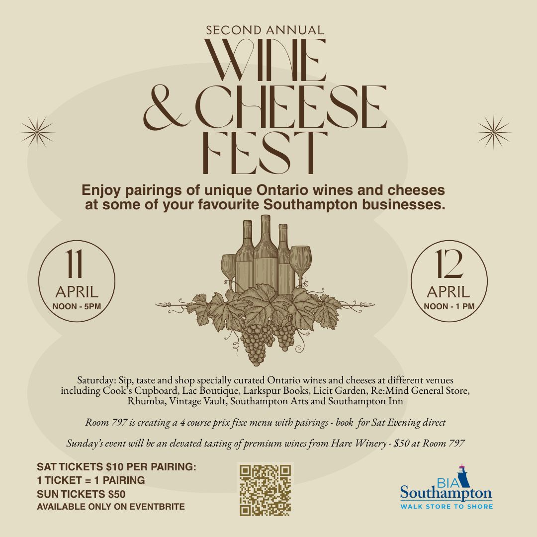 Enjoy pairings of unique Ontario wines and cheeses at some of your favourite Southampton businesses.