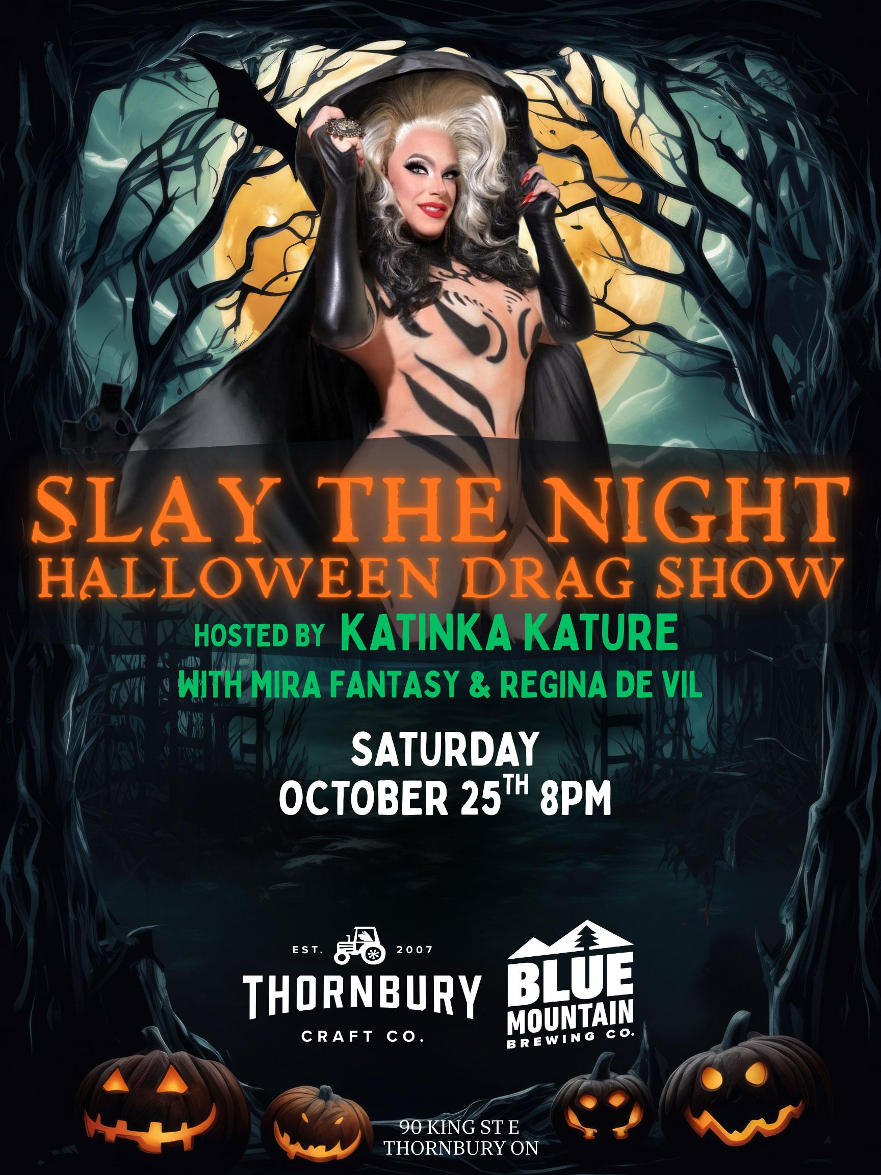 Your favourite summer Drag Show Host Katinka Kature returns to Thornbury Craft Co... But make it spooky! With supporting acts Mira Fantasy and Regina De Vil, don't miss out on our first Halloween event at the cidery!